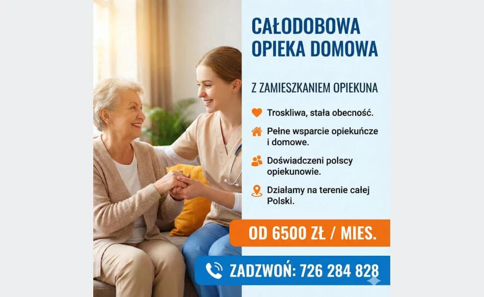 Zapewniamy opiekę z zamieszkaniem na terenie całej Polski – zwykle organizujemy ją w ciągu kilku dni.